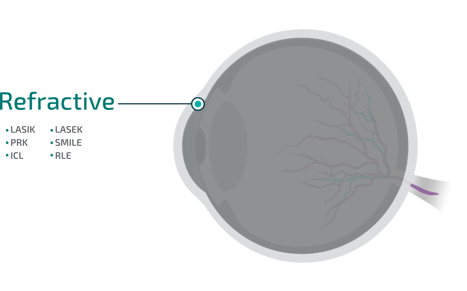 DALK=deep anterior lamellar keratoplasty; DMEK=Descemet’s membrane endothelial keratoplasty; DSEK=Descemet stripping endothelial keratoplasty; ICL=implantable collamer lens; IVT=intravitreal; LASEK=laser-assisted subepithelial keratectomy; LASIK=laser-assisted in situ keratomileusis; LKP=lamellar keratoplasty; MIGS=minimally invasive glaucoma surgery; PKP=penetrating keratoplasty; PRK=photorefractive keratectomy; RLE=refractive lens exchange; SLT=selective laser trabeculoplasty; SMILE=small incision lenticule extraction; YAG= yttrium aluminum garnet.